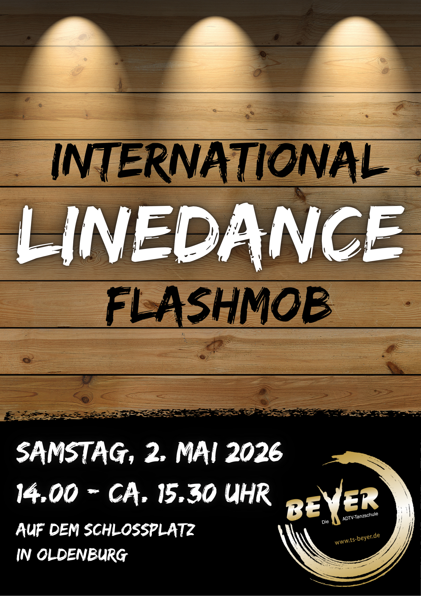 Der Internationale Tag des Linedance Flashmobs ist ein weltweites Tanzereignis, das in diesem Jahr am 2. Mai stattfindet. Tausende Linedancer tanzen zeitgleich in Städten, Einkaufszentren oder Stränden festgelegte Choreografien, um Gemeinschaft und Freude am Tanz zu teilen. Im vergangenen Jahr haben wir uns erstmalig an dieser Veranstaltung beteiligt und auf dem Oldenburger Waffenplatz gezeigt, wie vielfältig Linedance ist und wie stark die Gemeinschaft ist. Es haben sich sehr viele Gruppen aus der Region zwischen Oldenburg, Rastede bis hin nach Bremen daran beteiligt. Auch in diesem Jahr möchten wir uns dieses Event nicht entgehen lassen und starten gemeinsam mit euch um 14 Uhr auf dem Oldenburger Schlossplatz. Also seid dabei und tanzt mit uns - entweder als aktive linedancende Person oder als aktive anfeuernde und zuschauchende Person